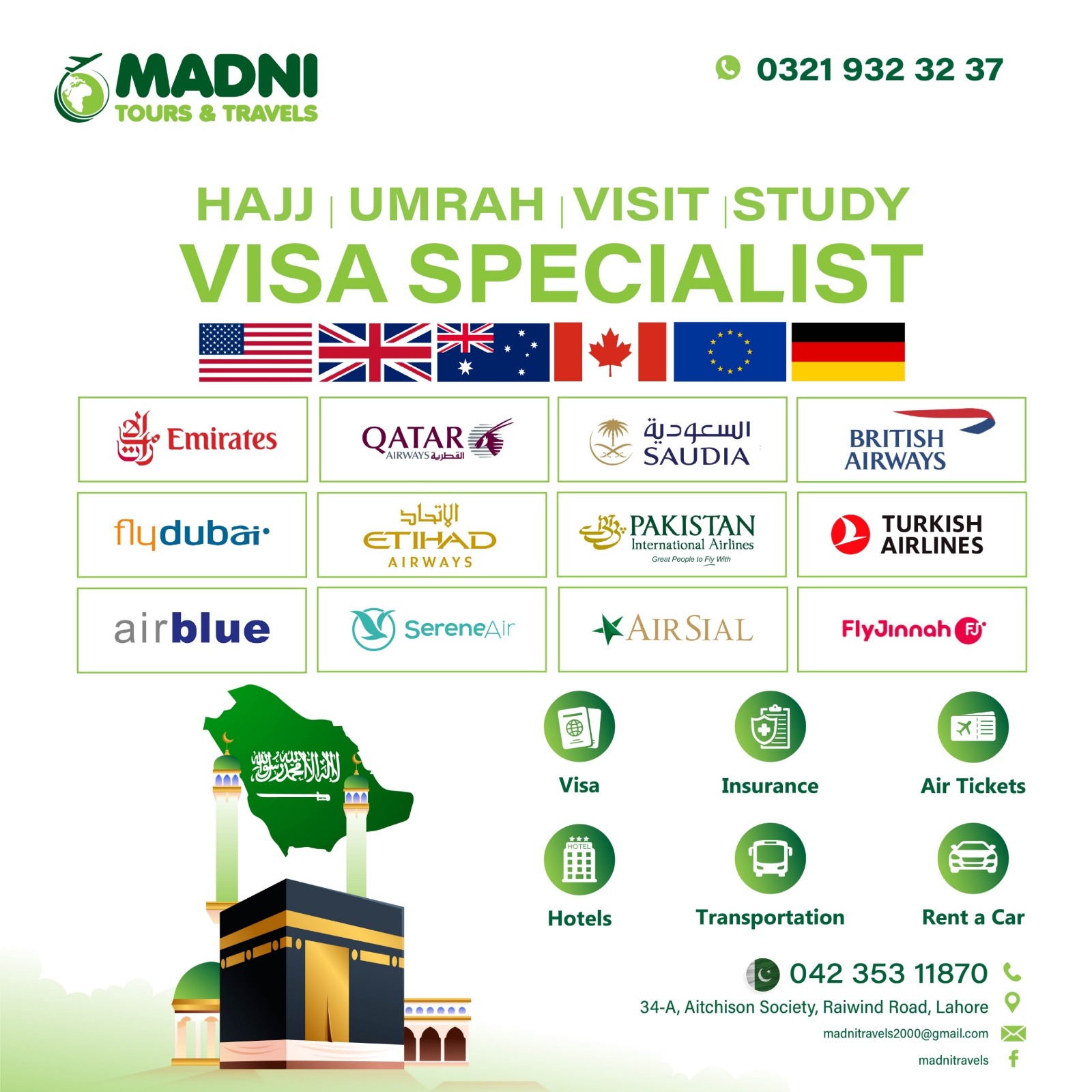 Alhamdulillah, I performed Umrah through Madni Tours & Travels. They provided me with a visit visa, and my stay at Makkah and Anwar Al Madinah was wonderful. Truly professional and reliable service. A heartfelt thanks to Hafiz Akeel Mehmood.